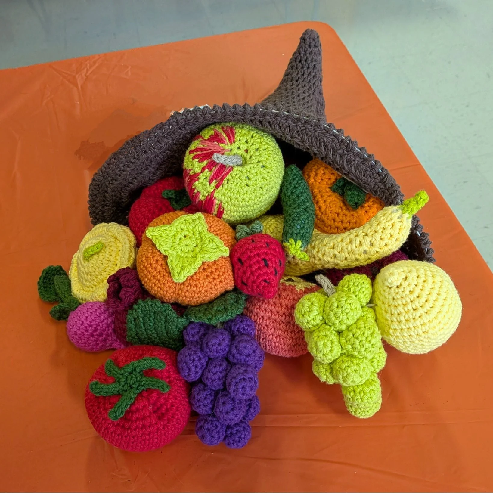 I am Valentina and I make the crafts. I have been working with yarn and fabric since childhood, and will try any medium I can get my hands on. My main mediums these days are crochet, knitting, embroidery, ceramics, collage, painting, and sewing. The majority of the things I make are my own designs. I enjoy a good challenge that I can do with the cat on my lap and an audiobook in my ears. I enjoy textures and colors and bringing a smile and a little bit of joy to the humans around me.